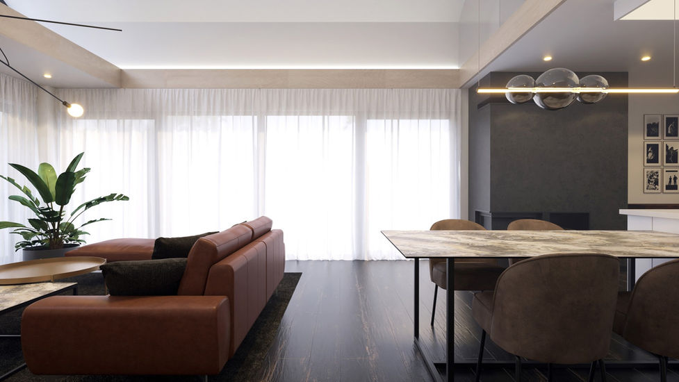 Tento návrh je akýmsi špecifikom. Pracovali sme s interiérom, kde sme sa pridržali existujúcej podlahy a sedačky. Zámer majiteľov bol otvoriť pôvodný strop nad obývacou časťou a myslíme, že takto vznikol zaujímavý a presvetlený priestor.